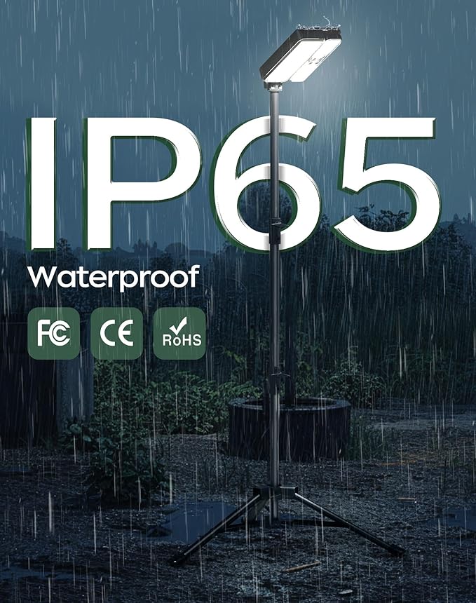 10000lm Dimmable Rechargeable Work Light, 15000mAh Detachable Camping Work Light 72'' Telescopic with 2 Separate Lights, 2 Charge Ways Type C & Solar Powered