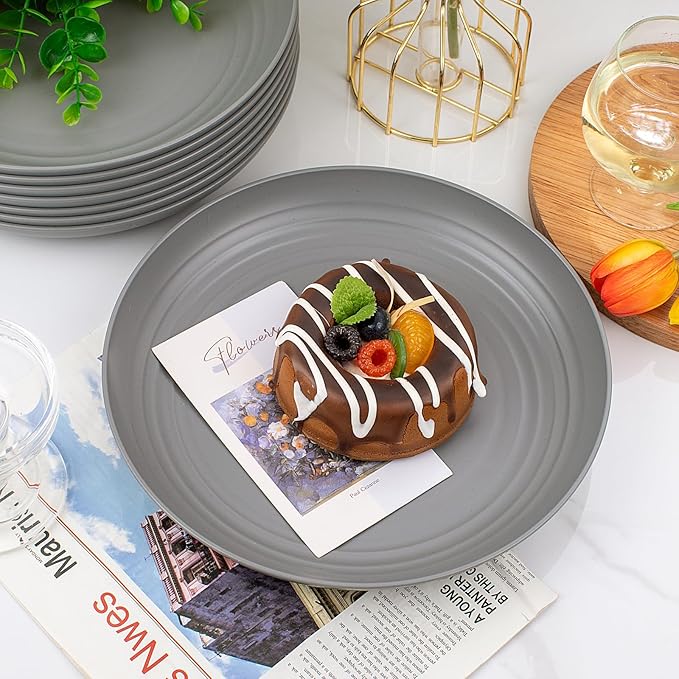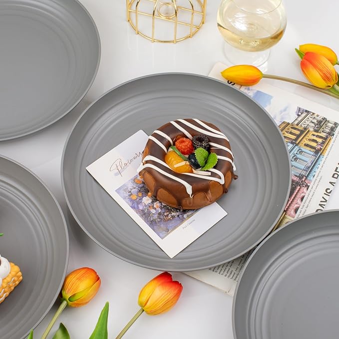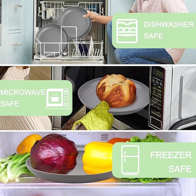 supernal 16pcs Dark Grey Wheat Straw Plates, Deep Dinner Plastic Plates, Reusable Plate, 10 inch Unbreakable Plate Set for Picninc, Camping, Lightweight Microwave Dishwasher Safe