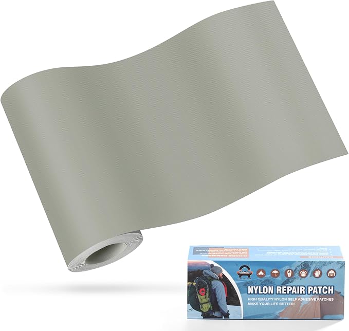 OAZ 3.9 x 63 inch Nylon Fabric Patch Kit - Self-Adhesive, Waterproof, Lightweight Repair Patches for Clothing, Down Jacket, Tent, Bag (Light Gray)