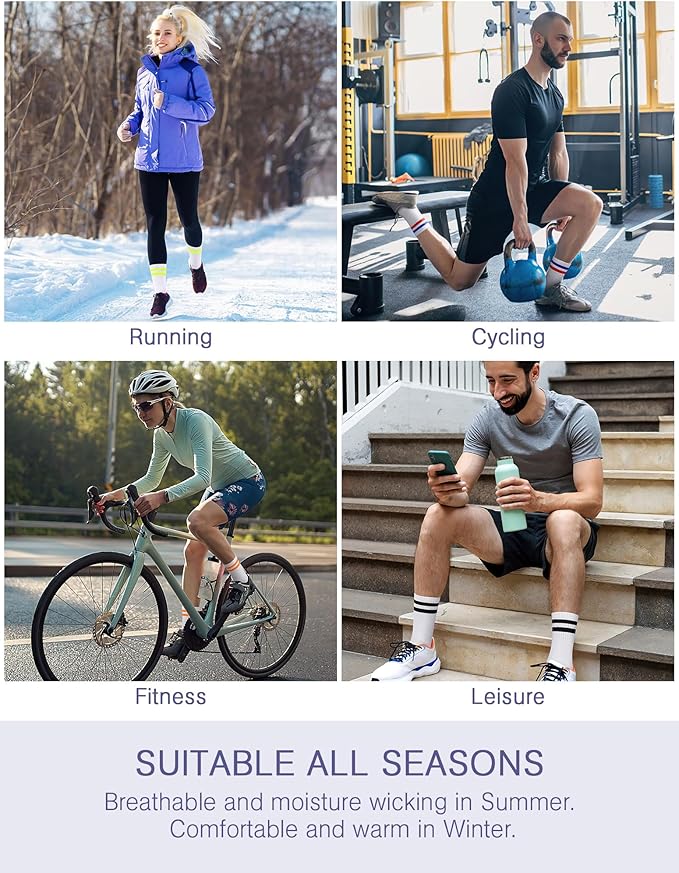 - [MATCH FOR ALL OCCASSION]: these calf socks will provide protection for your foot when you're wearing them at home or outdoors. Perfect high performance crew socks for athletic, running, biking, jogging, strength training, hiking, power walking, playing football, gym exercising and golfing. Simple style fits adults and teenagers' daily wear or workout.