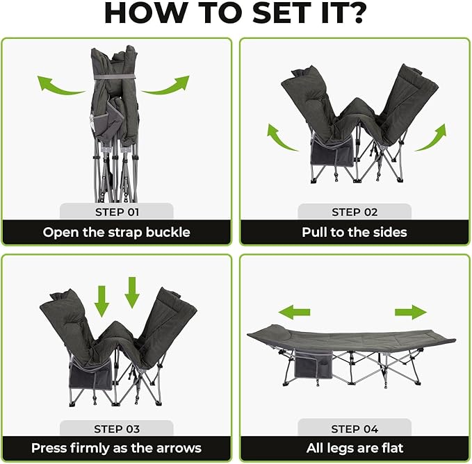 - All-in-one Design Padded Folding Cot: FUNDANGO camping cot features a super soft pad that can help you sleep comfortably. The pad is integrated with the camping bed, so there is no need to disassemble