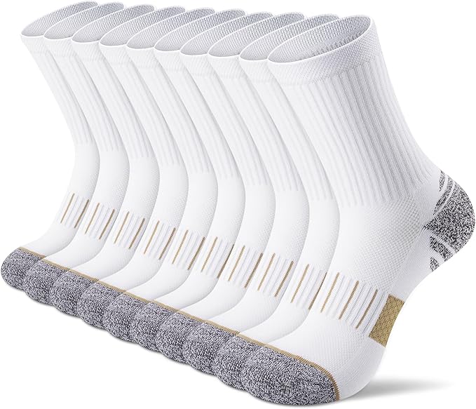 - High Ankle Design with Arch Support: The high ankle design of our white crew socks provides effective protection for your ankles . The arch support helps reduce foot fatigue by providing better support to your feet.