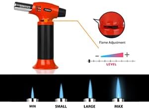Sondiko Butane Torch Lighter, Refillable Kitchen Torch with Safety Lock and Adjustable Flame for Desserts, Creme Brulee, and Baking, Orange