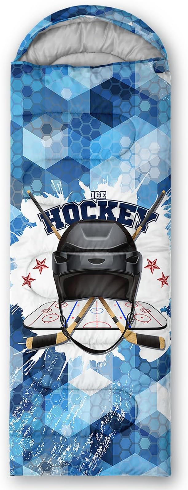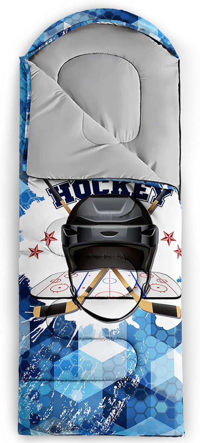 - 【Fits For 3 Seasons】: Size - 31 by 90 inches (W x D). Our Blue Honeycomb Hockey sleeping bag can be used in 3 seasons with a design temperature of 32℉-77℉(0℃-25℃). These Sleeping bags also have a weather resistant waterproof design to keep you warm and prevent you from any dampness.