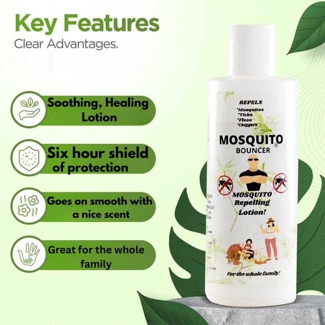 "Mosquito Bouncer Lotion" 4 fl. oz. (pack of 1) A natural, soothing, non toxic, lotion to keep Mosquitos, Ticks, Fleas, and Chiggers, away from you and your family.
