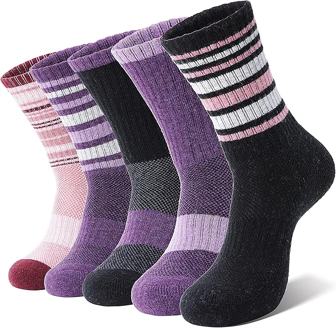 Anlisim Merino Wool Hiking Socks for Women Thermal Winter Warm Boot Work Cushion Socks 5 Pairs