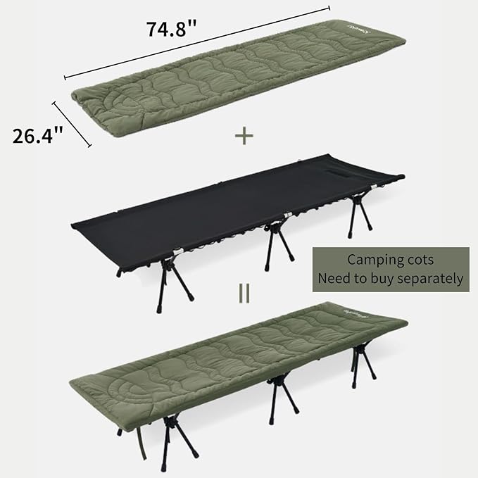 - The Skin-friendly fabric, soft and breathable, fluffy warmth, thermal storage, cold-resistant, fluffy warmth, thermal storage, cold-resistant. Extra cushion and comfort for sleeping in the camping cots
