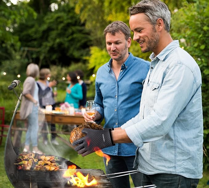 - You Are In The Top Chef League - After we did a market survey among top chefs and grillers we succeeded in making the ultimate comfortable kitchen oven mitt with a non-slip grip, a one-sized glove that fits perfectly all men and women alike, just the perfect set of 2 that will protect you from any danger, from the heat that comes from your smoker or barbecue gas grills outdoors to the top of your stove indoors! We got you covered! Don't settle for a cheap imitator. Great dad gifts for men.