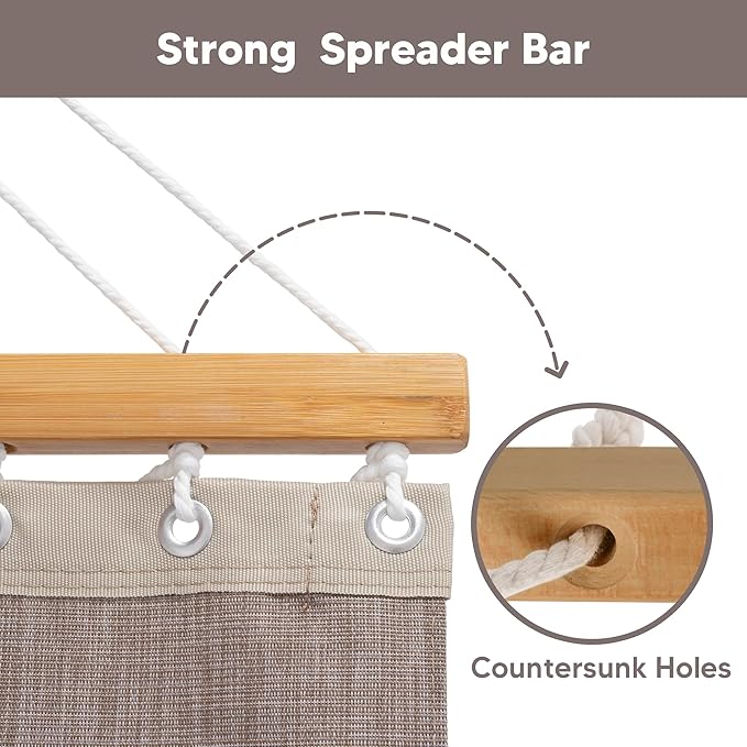 - Strong Spreader Bar: 55 inch spreader bars are more stylish and stable, giving you a comfy nap without fearing to flop down. Features countersunk spreader bar holes which reduce the severity of the friction between rope and wood