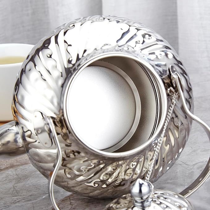 SANQIAHOME 2000ml stainless steel antique style teapot,with Infuser, thickened boiling kettle, lifting handle,Silver