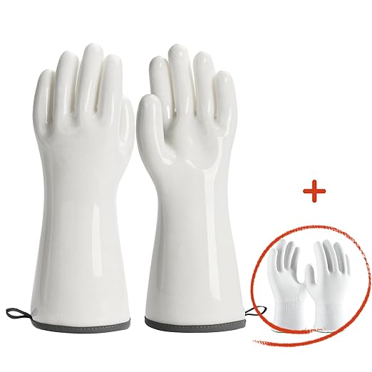 - 【100% Food Grade Oven Mitts】HOLDZERO liquid silicone oven gloves are made of 100% FDA Grade and BPA Free liquid silicone, these Oven Glove has a soft jersey cotton liner that fits loosely so your hands stays cool and comfortable. The 8" length adds extended protection for most of your arm. Just as useful in the kitchen as they are grilling or frying.