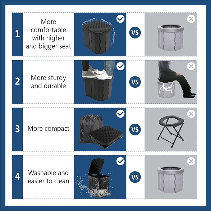 - 【Multifunctional and Widely Applicable】With lid, it can not only be used as an outdoor toilet, but also as indoor toilet for the elderly,a trash can, a storage box, a stool, a vomiting bucket, etc. to satisfy your different needs when taking outdoor activities. Perfect for backpacking, traveling, camping, boating, fishing, hiking, long road trip, and more.