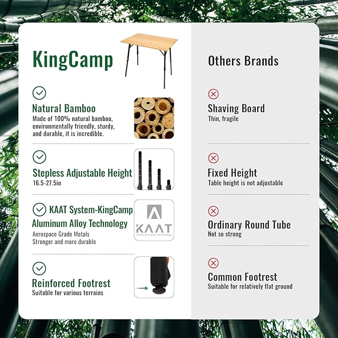 KingCamp Bamboo Folding Table, 4-Fold Camping Adjustable Height Portable Outdoor Lightweight & Compact Table with Aluminum Frame for RV Picnic BBQ Tailgating