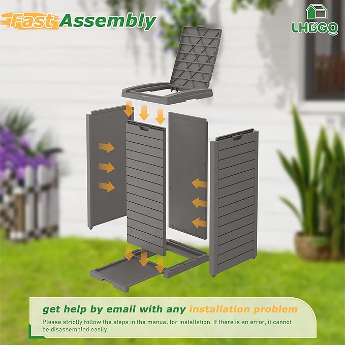 - Quick Installation - This outdoor trash bin comes with a detailed user manual. No screws or tools are required—simply snap the panels together, and installation can be completed in approximately 10 minutes. For additional support, please refer to the installation videos on the page