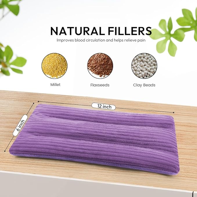 - 【Moist Heating Pad Microwavable with Natural Material】Microwave heating pad is filled with flaxseed, millet, clay beads that are unscented and retain heat more durable and effective, providing longer comfortable when heated.