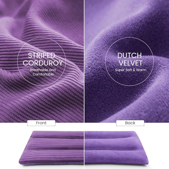 - 【Double Side Fabric Design Microwave Heating Pad】The heat can be evenly distributed on the bean bag and maintain long-lasting heat. Thanks to the interval cell design, it can be well fixed in the position of the filling. Super soft dutch velvet on one side to gently hug your skin and provide moist warmth, while the striped corduroy on other side give you a different comfortable touch.