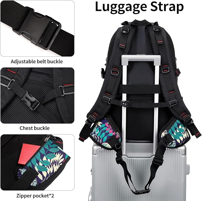 - Large Capacity: With 40L storage space, this backpack features with multi-compartment design includes one main zipped compartment, several front pockets with zippers and two side pockets. Large capacity helps you easily organize all your essential items.