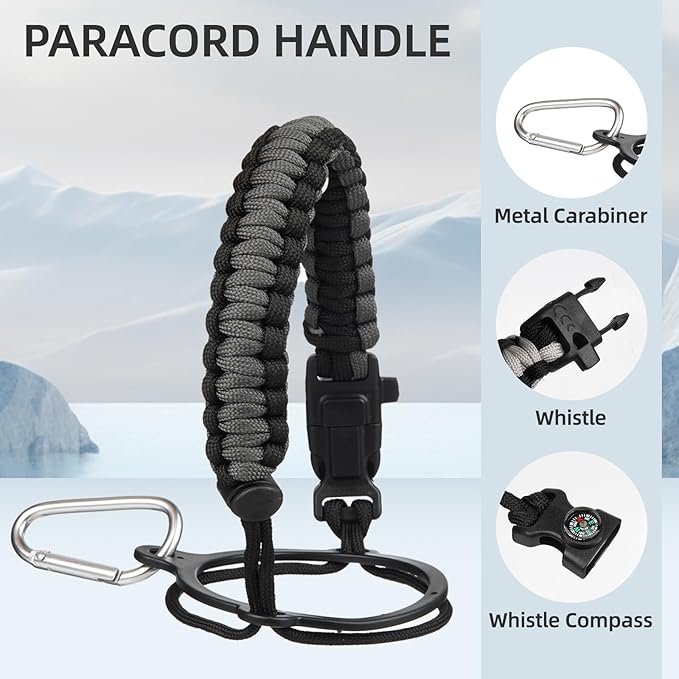 - The large capacity gallon water jug comes in various sizes, including 50 oz, 64 oz, 87 oz, and 128 oz, with a range of colors to choose from according to your need. All sizes of bottles equip with a paracord handle and a pouch for easy carrying