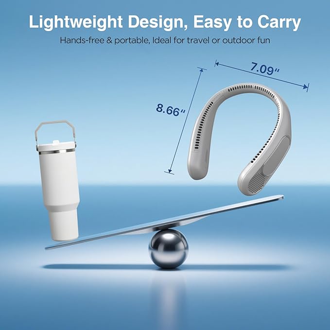 - 【Sleek & Trendy Design, Stylish & Practical】The portable fan for travel features 360-degree surrounding airflow for cooling, a stylish appearance, and a hands-free design that’s easy to wear around your neck, perfect for trips. Personal fans for your neck are essentials for staying cool during outdoor activities like gardening, traveling, hiking, biking, and concerts. It’s also ideal for all rooms use, keeping you comfortable while working, exercising, cooking, or enduring hot environments
