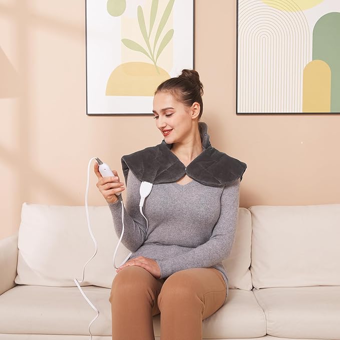 Ruqiji 19" x 24" Weighted Neck&Shoulder Heating Pad, 2.5lbs with 12 Temperature Settings&Countdown timer,Pain Relief for Neck/Shoulders/Menstrual Pain, Christmas Gifts for Women Men Mom Dad(Dark Gray)