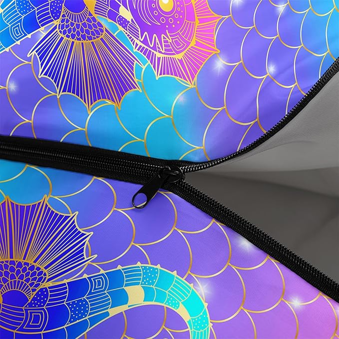 - 【Fashion Design】This cute Seahorse camping sleeping bag comes in a purple and blue color scheme that adds some style to your camping trip.An essential piece of gear for outdoor activities,our sleeping bags are designed to provide much-needed rest after a long day outdoors.