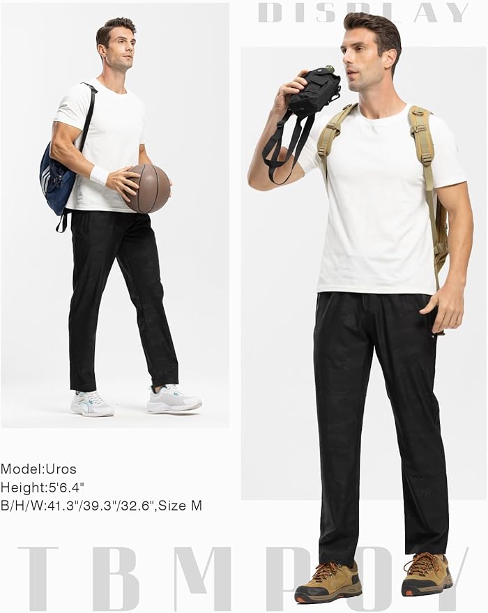 TBMPOY Men's Lightweight Hiking Travel Pants Breathable Athletic Fishing Active Joggers Zipper Pockets
