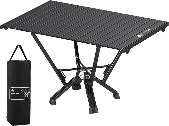 Camping Table Folding, Small Camping Table with Load 380lbs, Portable Roll up Aluminum Foldable Table with Carry Bag for Outdoor, Picnic, Camping, Black