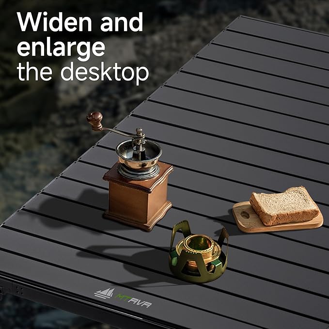 - 【Easy installation】: Set up the MTRVR Outdoor Folding Table for camping effortlessly. Unfold the aluminum frame, insert the guide rails, and press the tabletop into place. Enjoy a sturdy picnic table for coffee breaks, beachside relaxation, or picnics. Simple assembly, even a child can do it
