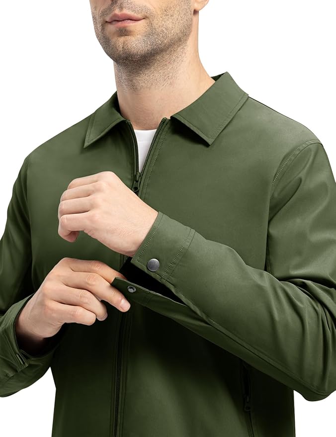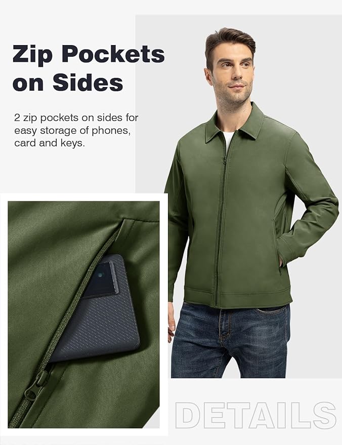 • 【Occation】This men's full zip lightweight jacket is suitable for wearing on cool spring and autumn nights or in the morning, Ideal outfit for Sports,Mechanic Work, Traveling, Golf, and other outdoor activities.