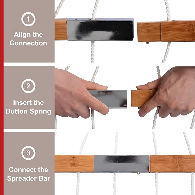 - Sturdy Spreader Bar: The spreader bars are environmentally friendly and strong. It could prolong the service life of your outside hammock, which make your hammock be a good companion in your life