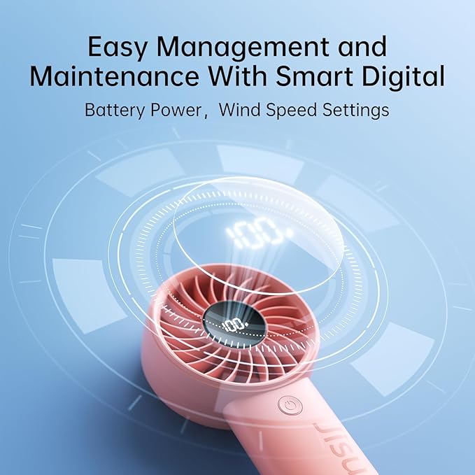 JISULIFE Handheld Portable Fan with Powerful Motor,LED Display,3600mAh Battery,5 Wind Speeds,Lanyard; Summer Essentials USB Rechargeable Hand held Fan for Travel,Beach,Makeup,Concerts-Pink