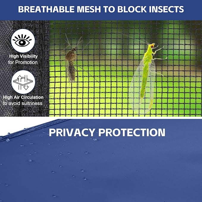 Canopy Universal Mosquito Netting Tent, Converts 10'x10' Canopy Gazebo into Camping Inner Tent, Screen House with Full PE Floors for Patio, Outdoor, Garden(TOP & Frame NOT Included) Navy Blue