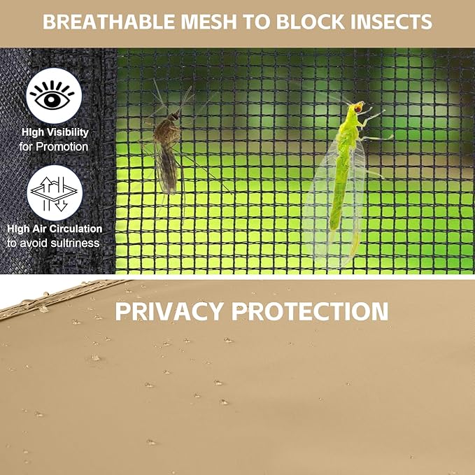 Canopy Universal Mosquito Netting Tent, Converts 10'x10' Canopy Gazebo into Camping Inner Tent, Screen House with Full PE Floors for Patio, Outdoor, Garden and Backyard(TOP & Frame NOT Included)Khaki