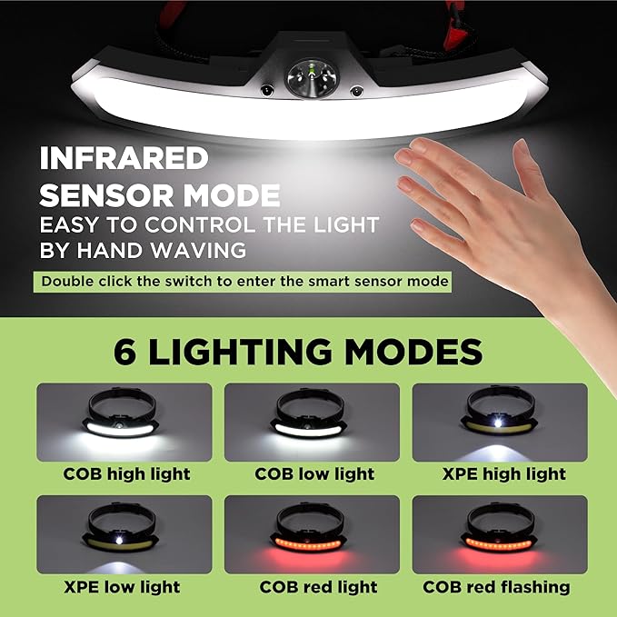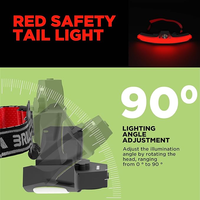 - Safety Head Lamps Led Rechargeable: The high lumen headlamp features a red light mode, ideal for preserving night vision during work or outdoor activities. Stay visible and secure with best headlamp.