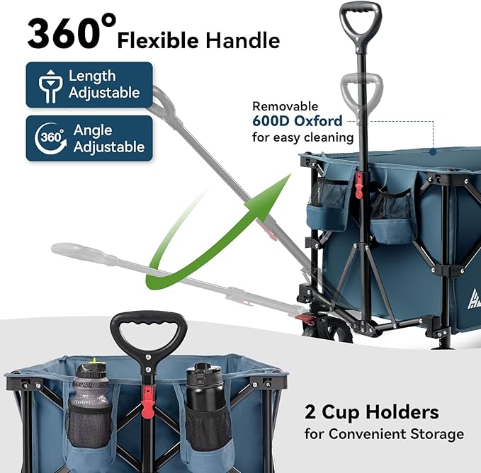Hikenture 330lbs Collapsible Wagon Cart, Ultra-Large Wagons Carts Foldable Heavy Duty, Utility All Terrain Folding Wagon with Wheels for Groceries, Garden, Sports, Beach, Shopping, Blue
