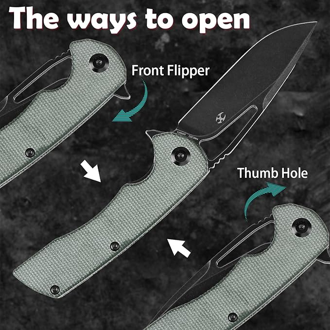 - COMFORTABLE GRIP-Green Micarta handle for a smooth gripping surface, an ultra-lightweight material that can withstand all weather conditions and meanwhile, promising dependable grip and is comfortable in the pocket or hand.