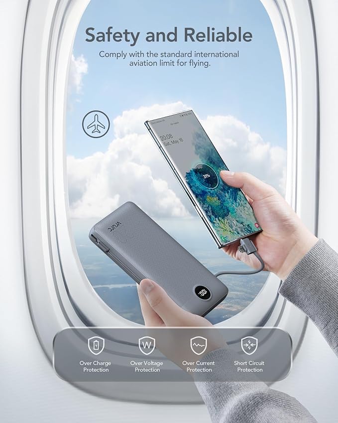 - [Safety and Reliable] The portable charger with wall plug is in line with aviation flight safety and can be carried on the plane. The smart chip can protect your device from overcharge protection, overvoltage protection, overcurrent protection, short-circuit protection, and overtemperature protection, creating a safe charging environment for you.
