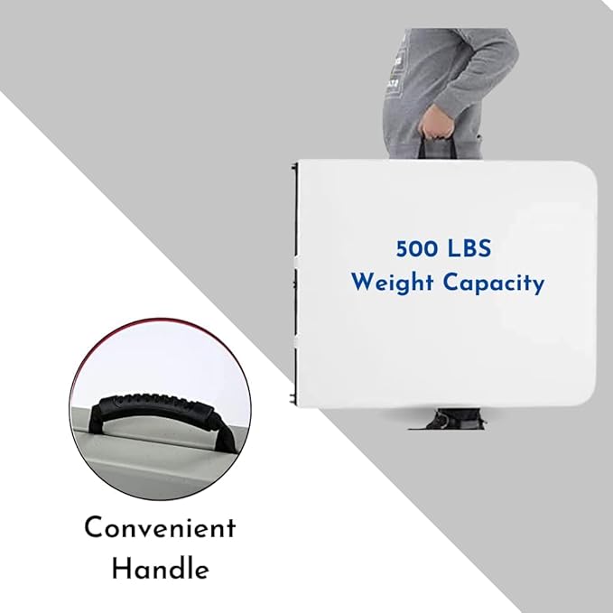 - Light-weight and fold in half design with carry handle makes this table easy to move and store almost anywhere, perfect for parties, picnics or camping.