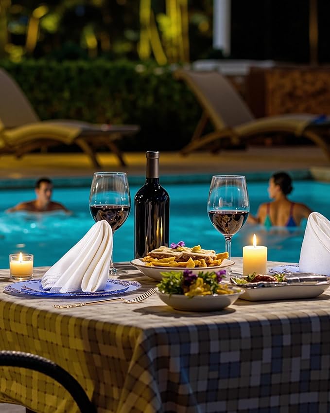 - Convenient and Hassle-Free: With blue gold plates, cleanup becomes a breeze, allowing you to focus on enjoying the occasion rather than worrying about washing dishes afterward. If you need to use these gold plates again, you can easily clean them for convenience and practicality.