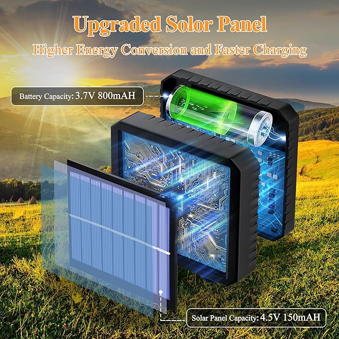 - 【Fast Charging Long Lasting】The outdoor string lights equipped with an 800mAh rechargeable battery that can be quickly fully charged within 6 hours. Once charged, the lights can shine for about 18 hours. The lights are also equipped with a built-in sensor that automatically turns them on at dusk and off at dawn, making them more efficient and convenient to use