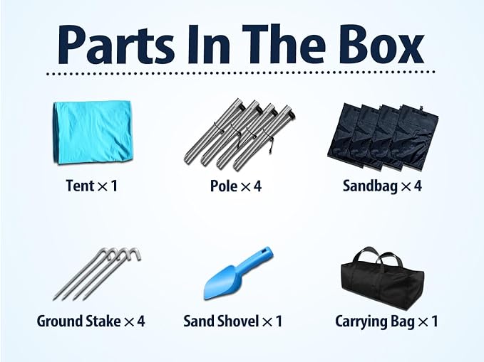 - 【 Effortless Sunshade Angle Control 】 - With the changing position of the sun, you can effortlessly adjust the angle of our beach tent to ensure maximum shade and comfort. No more struggling with heavy sandbags or labor-intensive digging - our innovative design makes adjusting the sunshade angle a breeze.