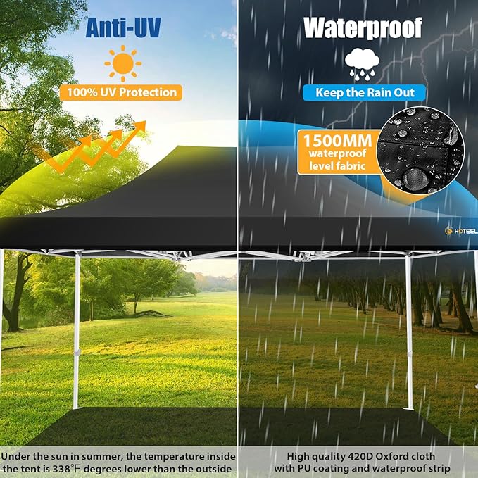 - ๐ใ๐๐ฉ๐ฉ๐ฅ๐ข๐๐๐๐ฅ๐ ๐ญ๐จ ๐๐๐ซ๐ข๐จ๐ฎ๐ฌ ๐๐๐๐๐ฌ๐ข๐จ๐ง๐ฌใ HOTEEL 10x15 heavy duty canopy tent provides 150 SQFT spacious covered space and 3 adjustable heights(134.6"-131.3"-128") for choice, accommodate up to 20 people. Perfect for wedding, birthday party, flea market, business, exhibition, sports competitions, art show, picnics and other events or use in beaches, garden, yards, street, ball field and more.