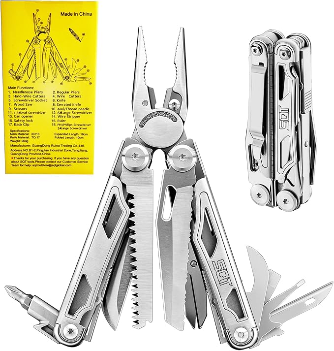 SQT2038-5 18-in-1 Multitool, Gifts for Men, Foldable & Self-Locking, Professional Multitool for DIY, Outdoor Camping, and Home Repairs...