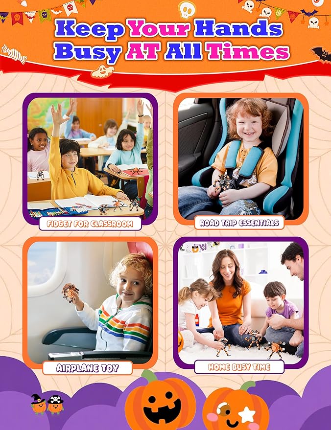 - 【Relieve Stress with Festive Fun】Not just a toy, these spinners are a great tool for managing anxiety, improving focus, and keeping hands busy. Their smooth, quiet spin is ideal for kids and adults to fidget with during spooky movie nights, while studying, or at work during the Halloween season