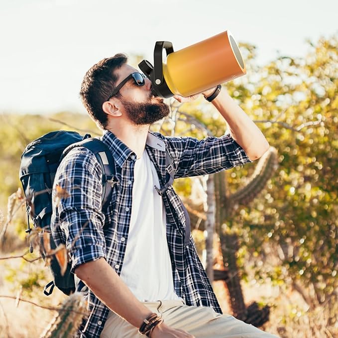 - LARGE CAPACITY, CONTINUOUS HYDRATION : Stay hydrated throughout the day with our high-quality half gallon reusable water bottle. This insulated bottle, with a large capacity of 64oz, is perfect for outdoor adventures like camping and hiking. Ideal for all your travel needs, this bottle guarantees convenience and ample hydration.