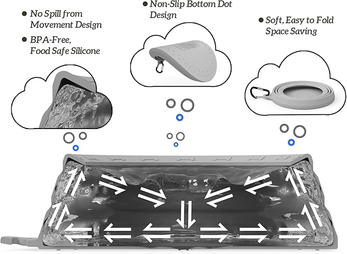- ULTRA STABILITY: Our portable travel bowl features a tapered shape that offers an exceptionally low center of gravity, ensuring unparalleled stability in most situations. Say goodbye to tipping over when you take your beloved pet on the go.