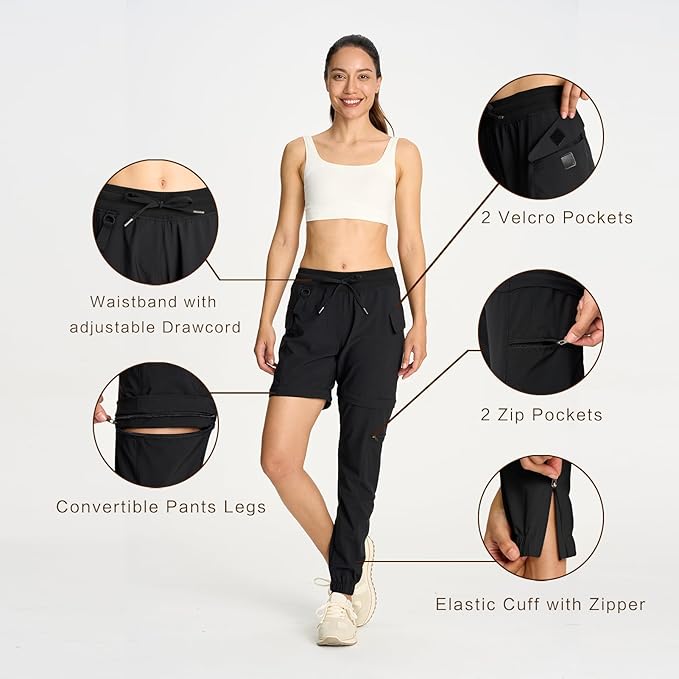 smawell Women's Hiking Pants Convertible Lightweight Zip-Off Outdoor Pants Quick Dry Joggers with Pocket