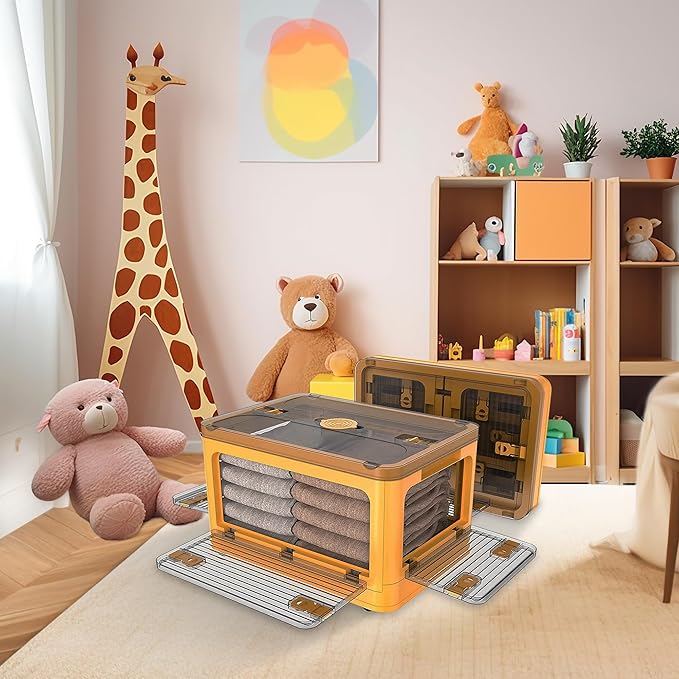 - 【Fully Open Four-door Design】The stackable storage bin is designed with four doors and one cover, and there are two simple pull rings on both sides of each door. Sliding them simultaneously opens or closes the box. The transparent view also makes it easy for you to identify the contents of the items inside and take the items easily.