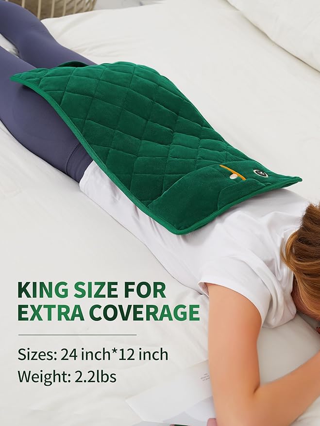 - Added Weight: Filled with micro-weighted beads, our electric weighted heating pad fits your back and abdomen snugly, ensures quick heating as well as minimal heat loss. Product Dimensions: 12" x 24", Weight: 2lbs