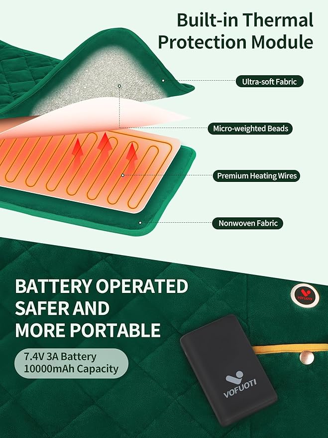 Vofuoti Weighted Heating Pad with Battery, 3 Heat Settings, Electric Portable Cordless Heating Pad for Back, Neck & Shoulder, Abdomen, Large Heated Pad for Women Men, 12" x 24", 2 lbs